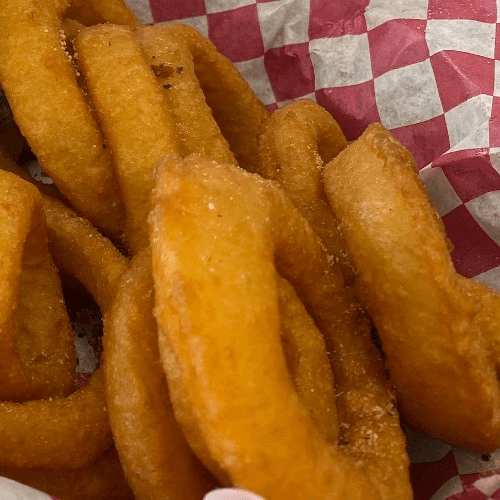Triple cheese, bearbattered jalapeno bottle caps. thousand island all on toasted Texas toast.