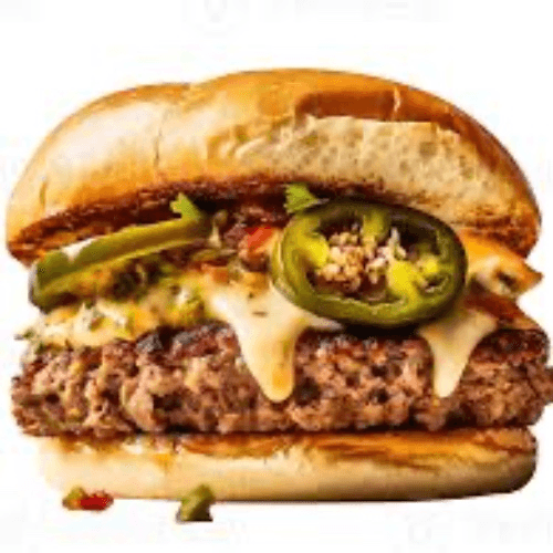 5.3 oz Fresh hamburger Patty spiced with our special hot seasoning, Jalapenos, Pickles, grilled onions and cheese with Bullchicks Ghost Pepper infused mayo.